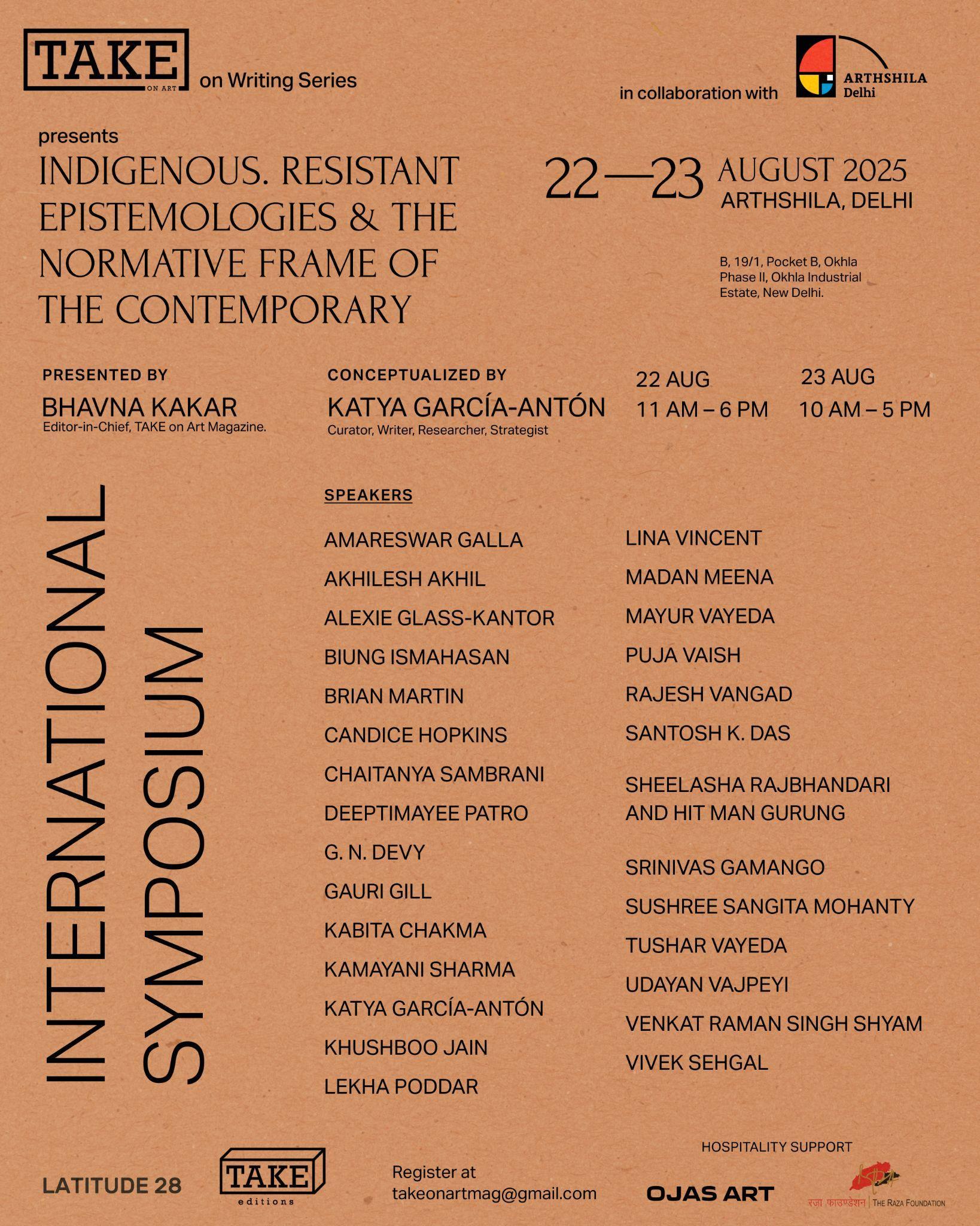This symposium is part of TAKE on Art’s broader mission to foster serious, nuanced engagement with contemporary art in South Asia and the world. The magazine’s ongoing TAKE on Writing series and its recent special “Indigenous” issues reflect a commitment to supporting critical writing, peer engagement, and the development of new, authentic modes of creative and intellectual practice.