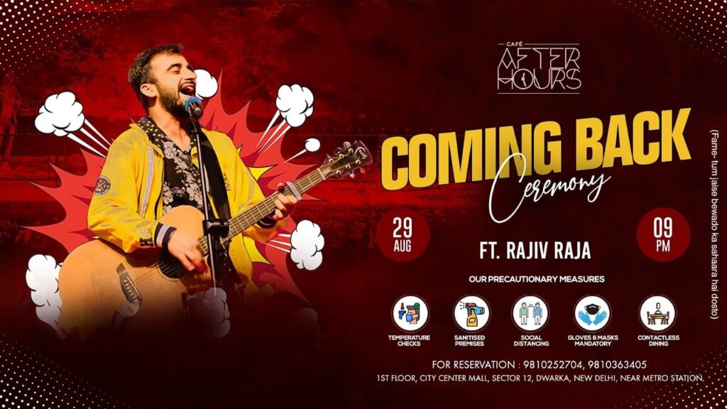 AfterHours Cafe is back with a bang. Making all the wait worth with coming back ceremony ft. Rajiv Raja on 29th August, 9pm onwards.