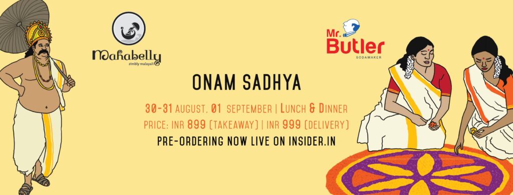We are accepting pre-orders for home delivery and takeaway on Insider.in, under “Mahabelly Onam Sadhya”. Limited Sadhyas available, book yours today!