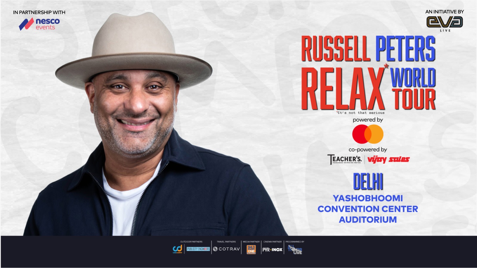 International stand-up star Russell Peters returns to India with his Relax World Tour. Known for his sharp observational humour and cultural commentary, Peters delivers an evening of hilarious stories about everyday life, relationships, and global stereotypes that have made him a comedy legend.