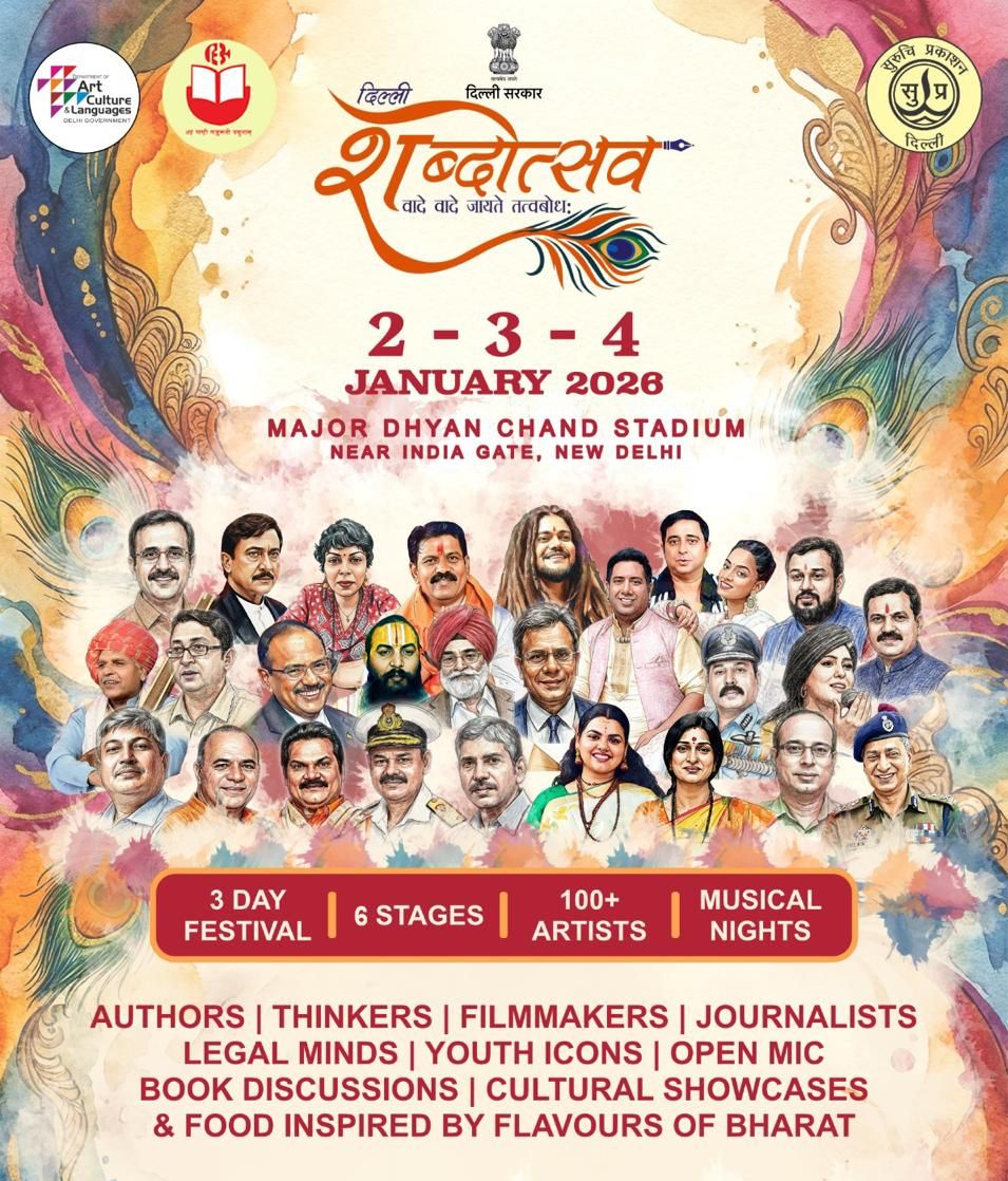 Delhi Shabdotsav 2026 brings together literature, culture, and ideas on a grand scale in the heart of the capital. Spread across three days and multiple stages, the festival features 100+ authors, thinkers, filmmakers, journalists, and youth icons, offering powerful conversations, debates, and performances rooted in Bharat’s civilisational and cultural legacy. Designed to engage families, students, and creators alike, this is one of Delhi’s biggest cultural gatherings to start the year.