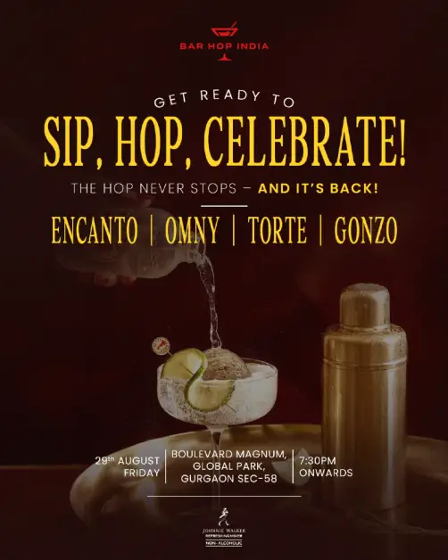 Hop across four premium outlets—Encanto, Omny, Torte & Gonzo—with curated Johnnie Walker cocktails, snacks, and a full à la carte menu. A classy evening of indulgence awaits.
