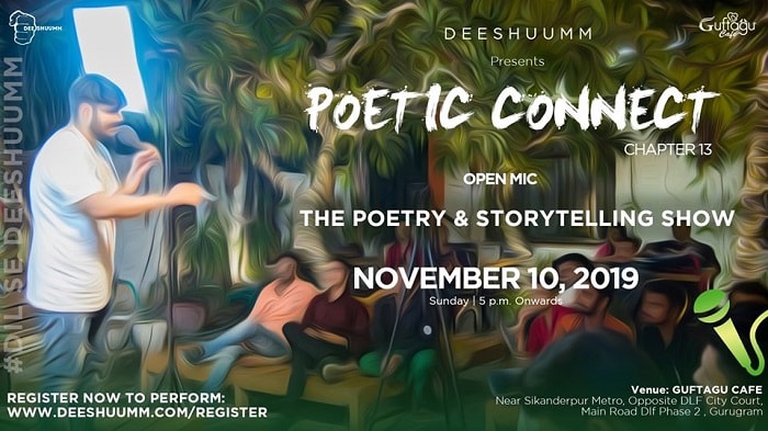 The art of writing is the art of discovering what you believe. Here’s this beautiful opportunity for all poets at heart and writers at night out there to step into the scene with Deeshuumm in Gurugram. Be a part of us, spend an evening you’ll remember and make memories you’ll never forget.