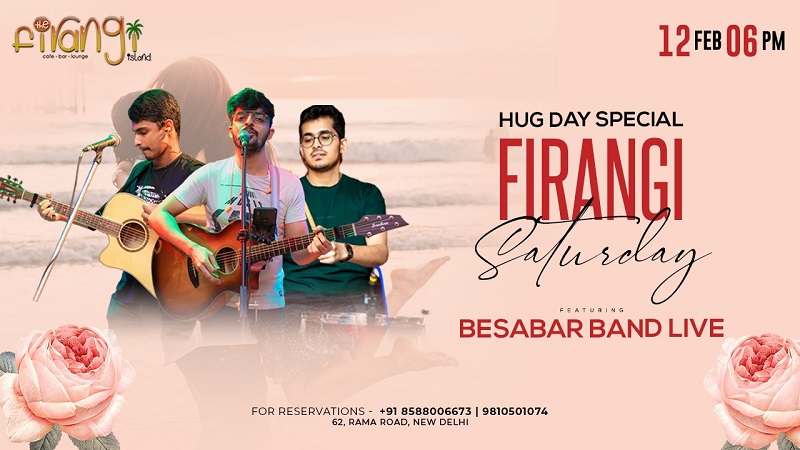 Bringing you the best from all at an outstanding night here. Tastiest food, upbeat music and hard-hitting cocktails, only for you to make your Hug Day momentous. Join us for Firangi Saturday featuring Besabar Band at The Firangi Island.