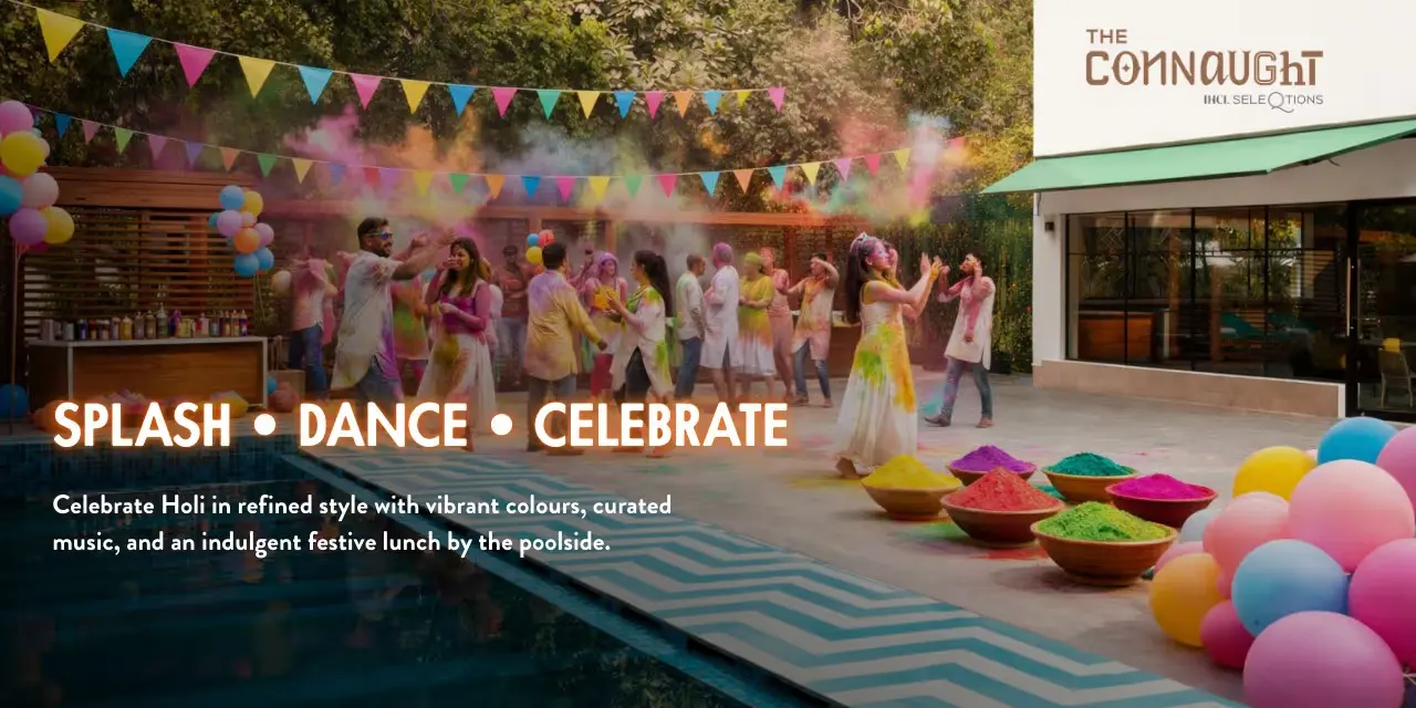 A sophisticated Holi celebration combining festive colours, curated music, gourmet food and premium hospitality β perfect for those looking for an upscale Holi experience in central Delhi.