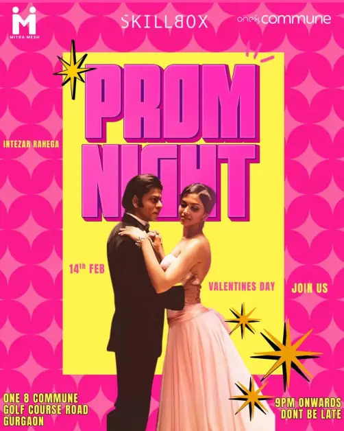 A standout among Valentine Day party events in Delhi NCR 2026, Prom Night 2026 recreates the Bollywood-style prom experience many missed out on. Expect fairy lights, romantic music, cinematic moments, and a glamorous crowd at One8 Commune.