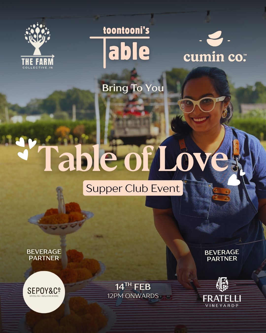 Among the most unique Valentine Day food events in Delhi NCR 2026, Table of Love is a 7-course supper club experience designed for couples, friends, families, and solo diners. Hosted at The Farm Collective, this afternoon gathering celebrates love in all forms through food, wine, and community.